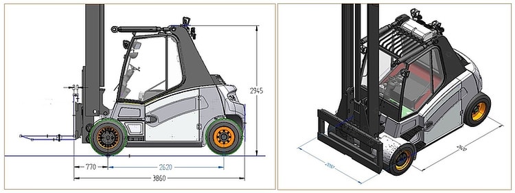 - Extrem kompakte Abmessungen (vergleichbar mit einem 8t Stapler)