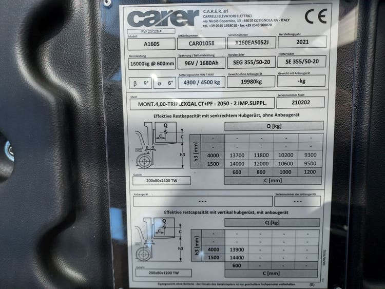 CARER A160 Elektrostapler Schwerlast 16t