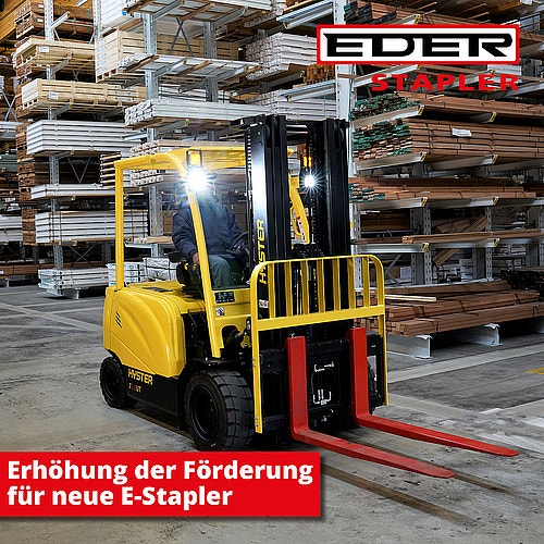 - Förderung gilt für alle Tonnagen und Modelle (Schubmaststapler ausgeschlossen)