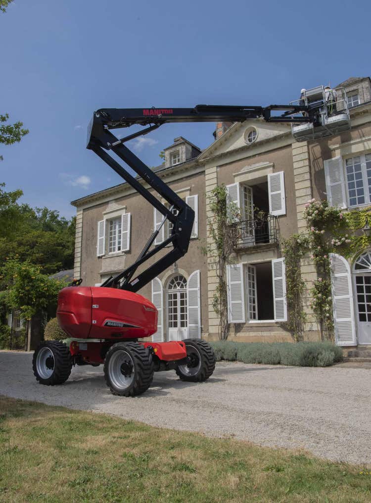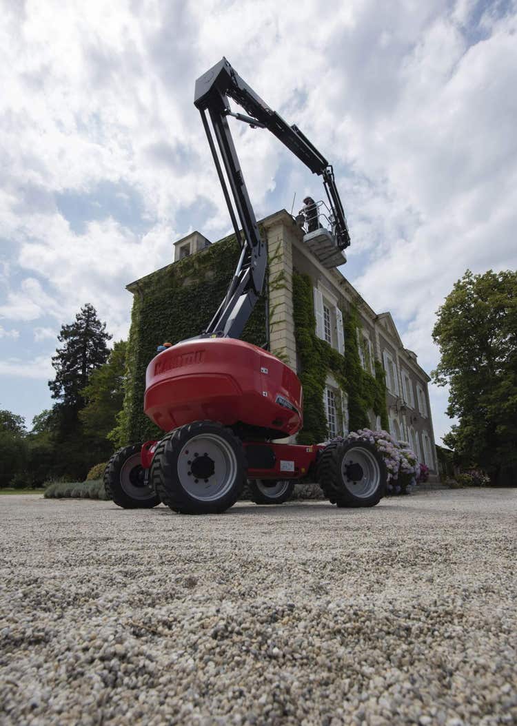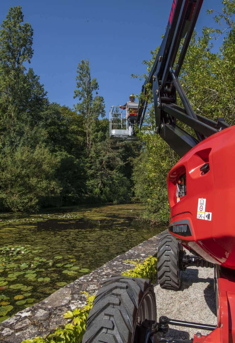 Die geländegängige Konstruktion dieser MANITOU Gelenkteleskoparbeitsbühnen ermöglicht es, selbst in unwegsamem Gelände und in verwinkelten Höhen sicher zu arbeiten. Mit einer großen Bewegungspräzision des Teleskopauslegers lässt sich die Hubarbeitsbühne einfach im Arbeitsbereich positionieren.
